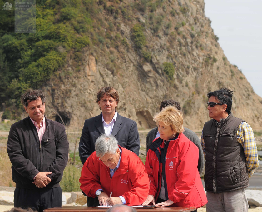 Registro que testimonia la visita oficial del Presidente Sebastián Piñera y otras autoridades gubernamentales, a localidades afectadas por el terremoto en Constitución. La serie comprende 7 fotografías a color que documentan el antes y después de lugares públicos de la zona.