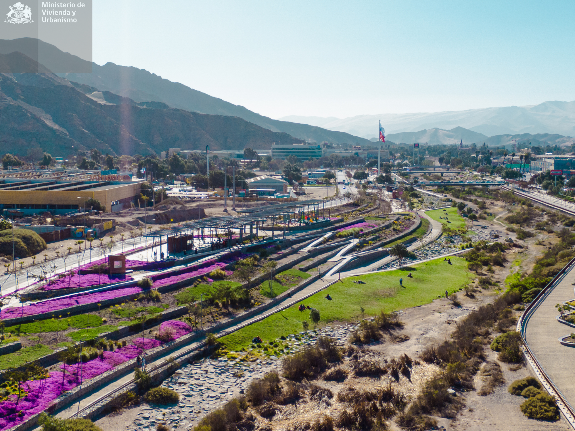 La Etapa 1, de carácter cívico, se vincula al centro urbano y al eje comercial de avenida Chacabuco, consolidando el eje cívico de la ciudad. Incluye una gran plaza dura que conecta con la Ruta 5 y la Plaza de la Bandera, donde destaca su fuente ornamental. Ambas riberas incorporan paseos peatonales que refuerzan el recorrido longitudinal, mientras que el cauce se estructura mediante enrocados vegetados que marcan el inicio del parque hacia el sur.