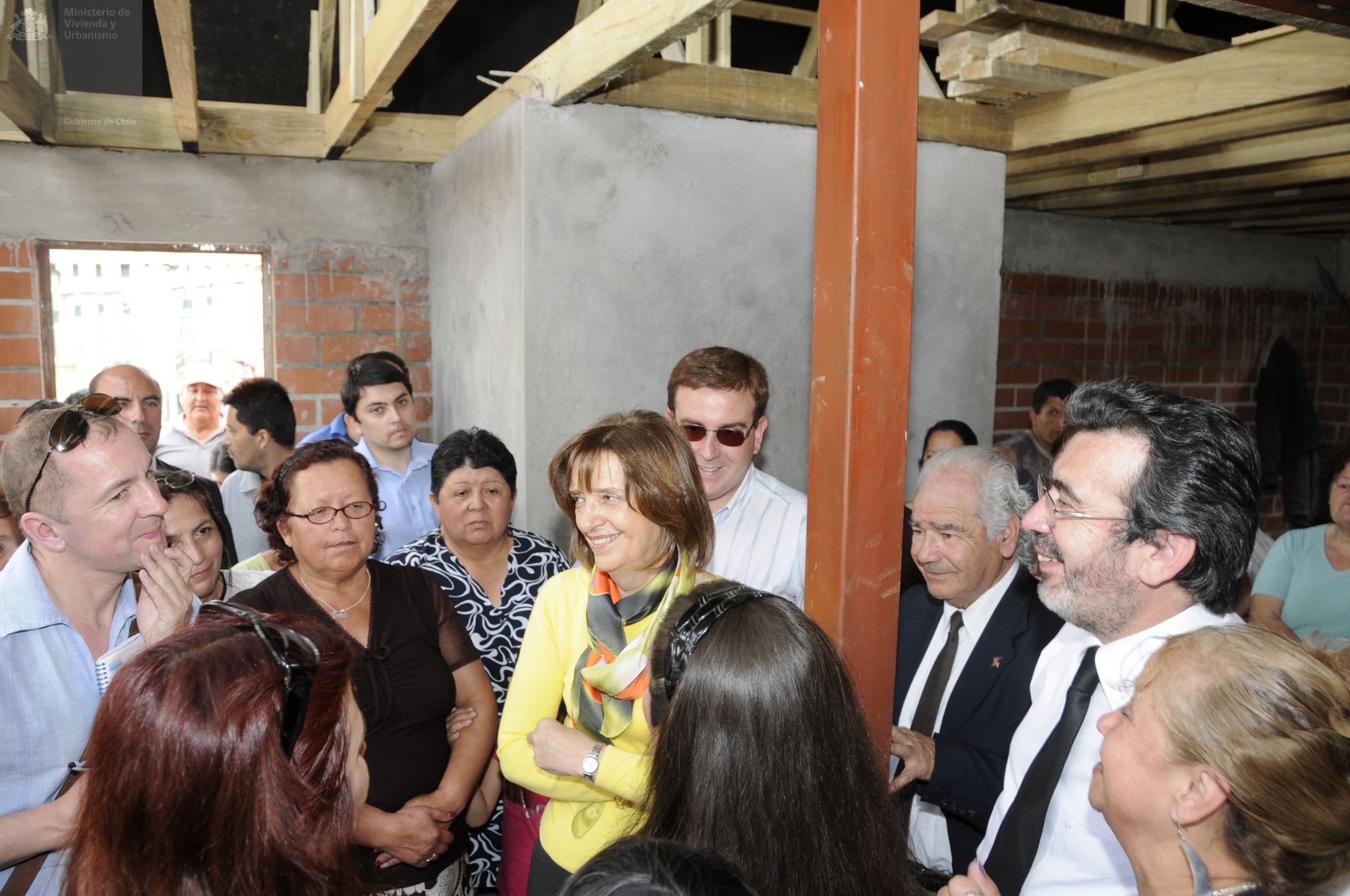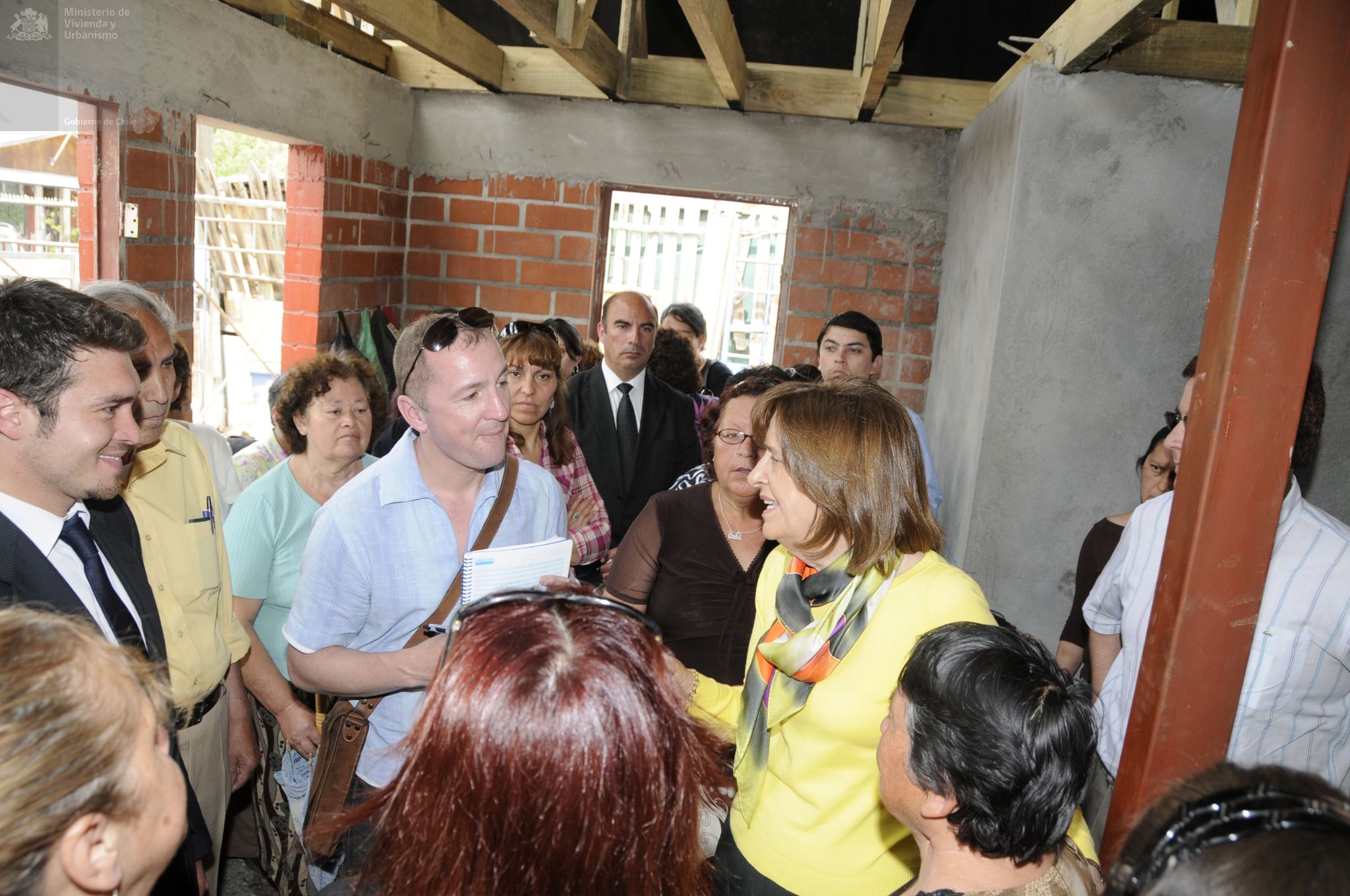 Ministra Patricia Poblete visita casa en construcción junto al Comité de Vivienda Claudio Arriagada Macaya de la población Millalemu de la comuna La Granja.