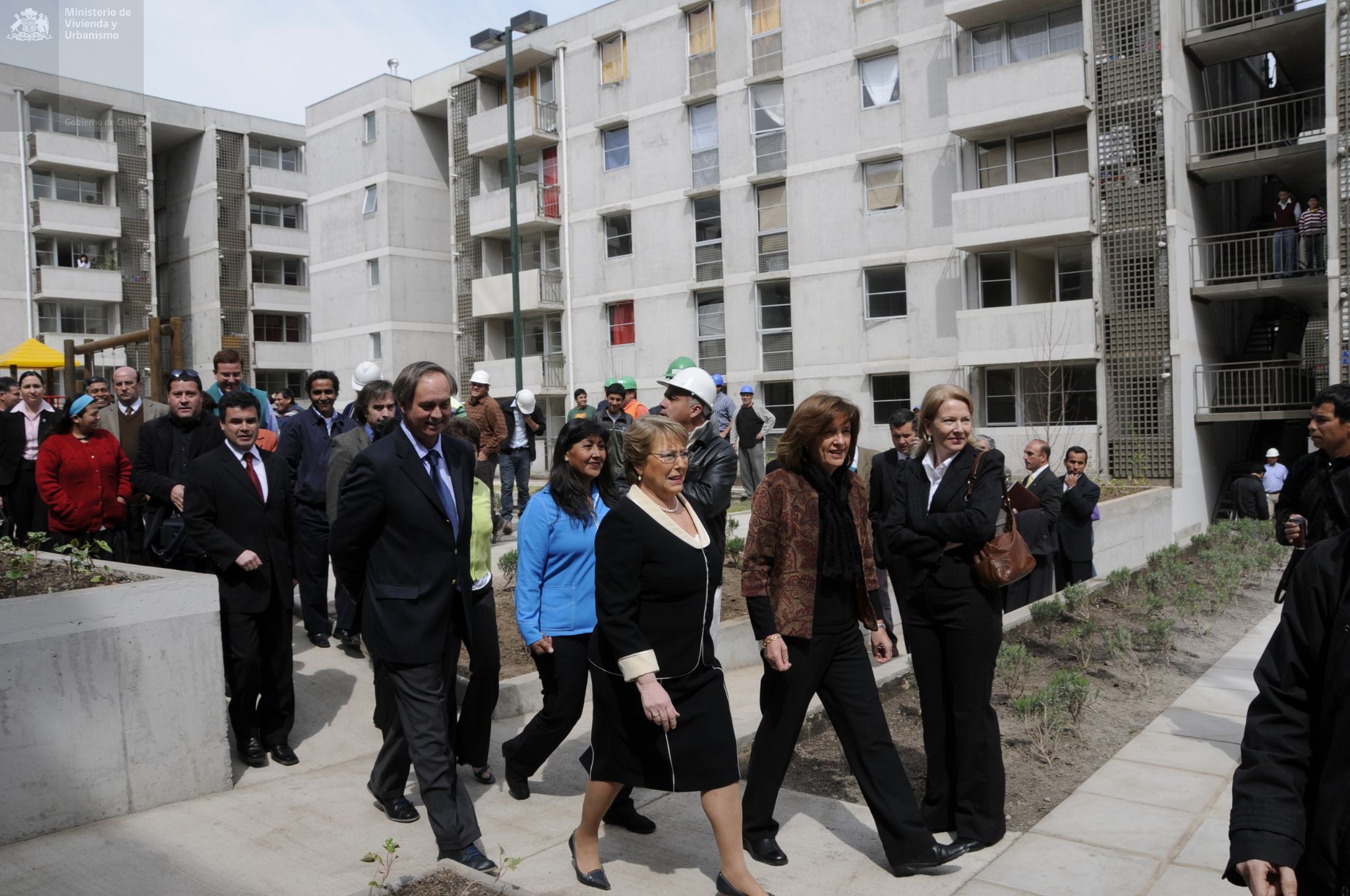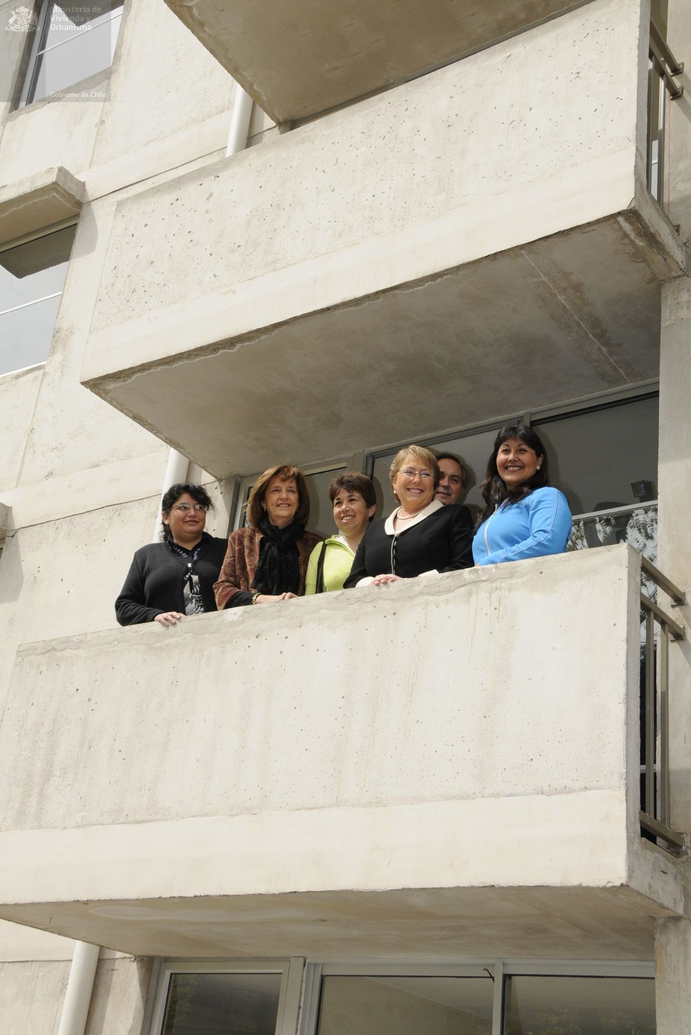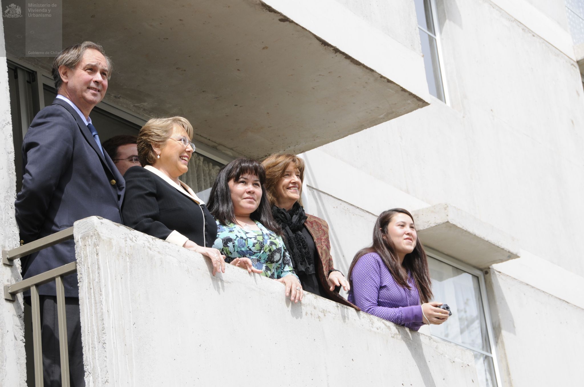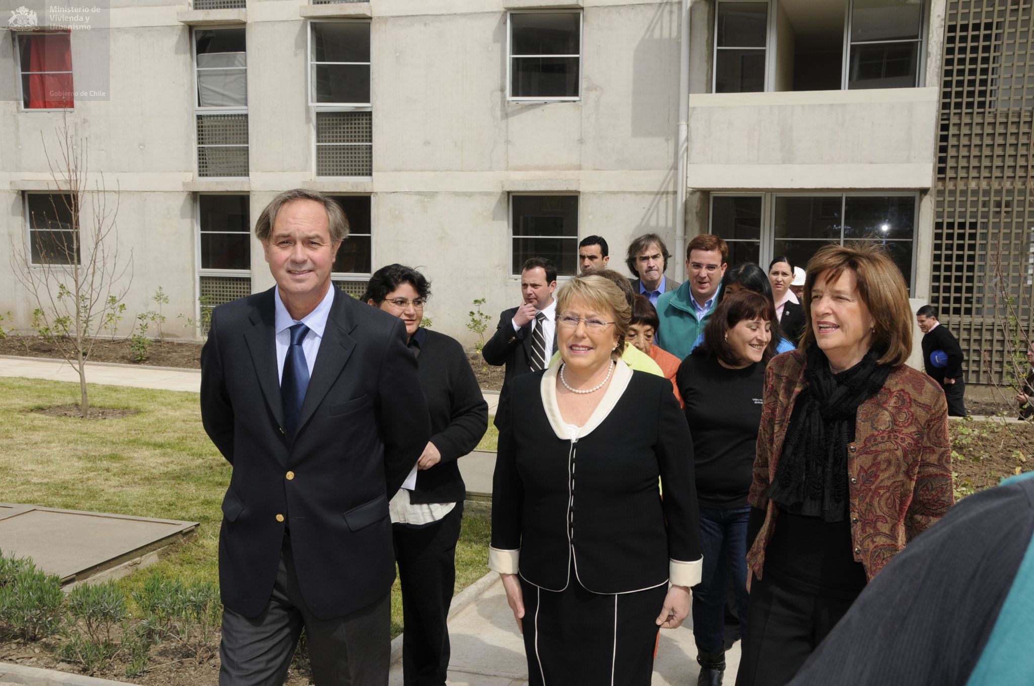 Presindenta Michelle Bachelet junto a la Ministra Patricia Poblete y el Alcalde de Las Condes Francisco de la Maza asisten a la entrega de conjunto habitacional en Las Condes.