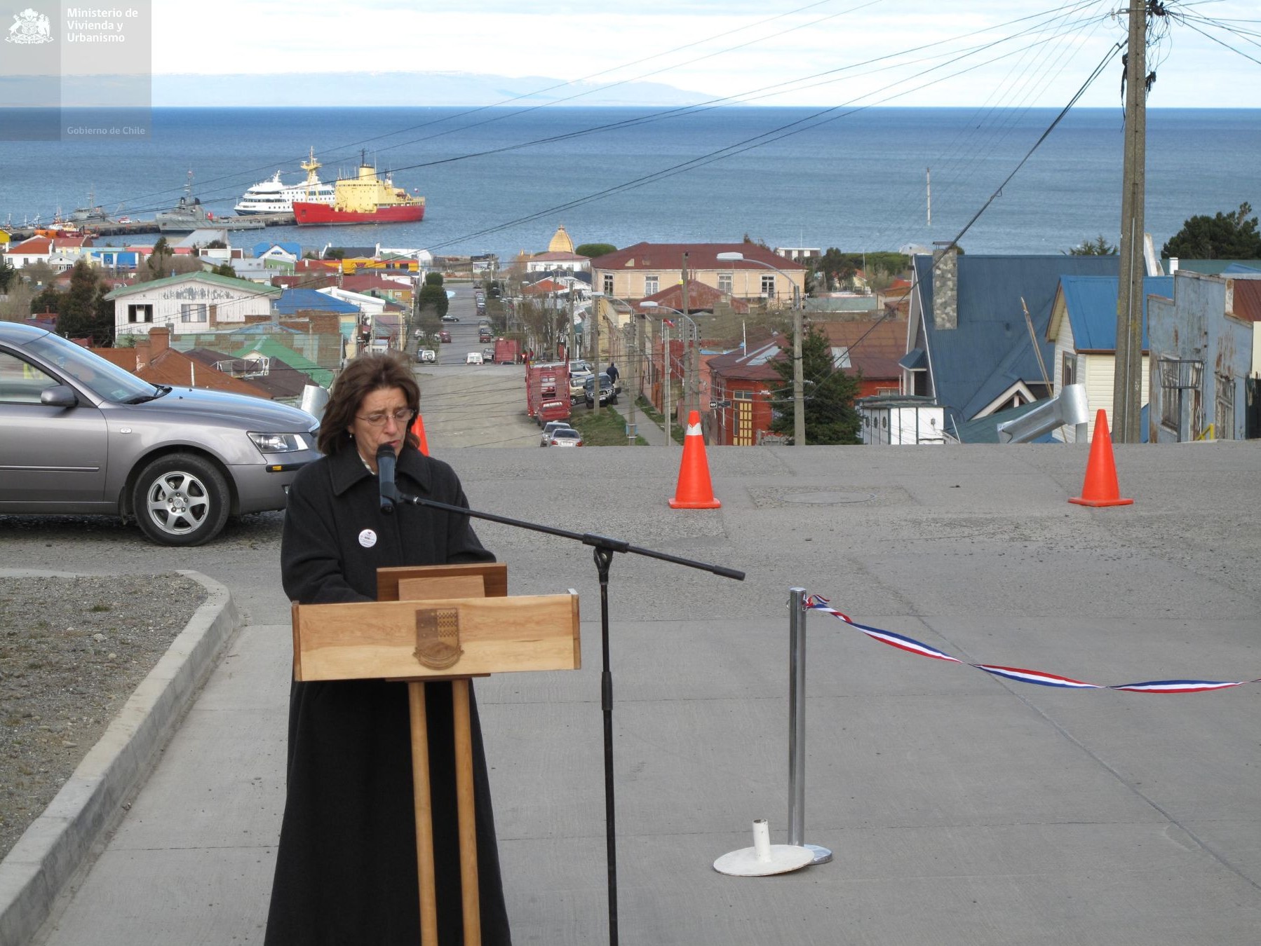 Ministra Patricia Poblete en la inauguración de conjunto habitacional en Magallanes.