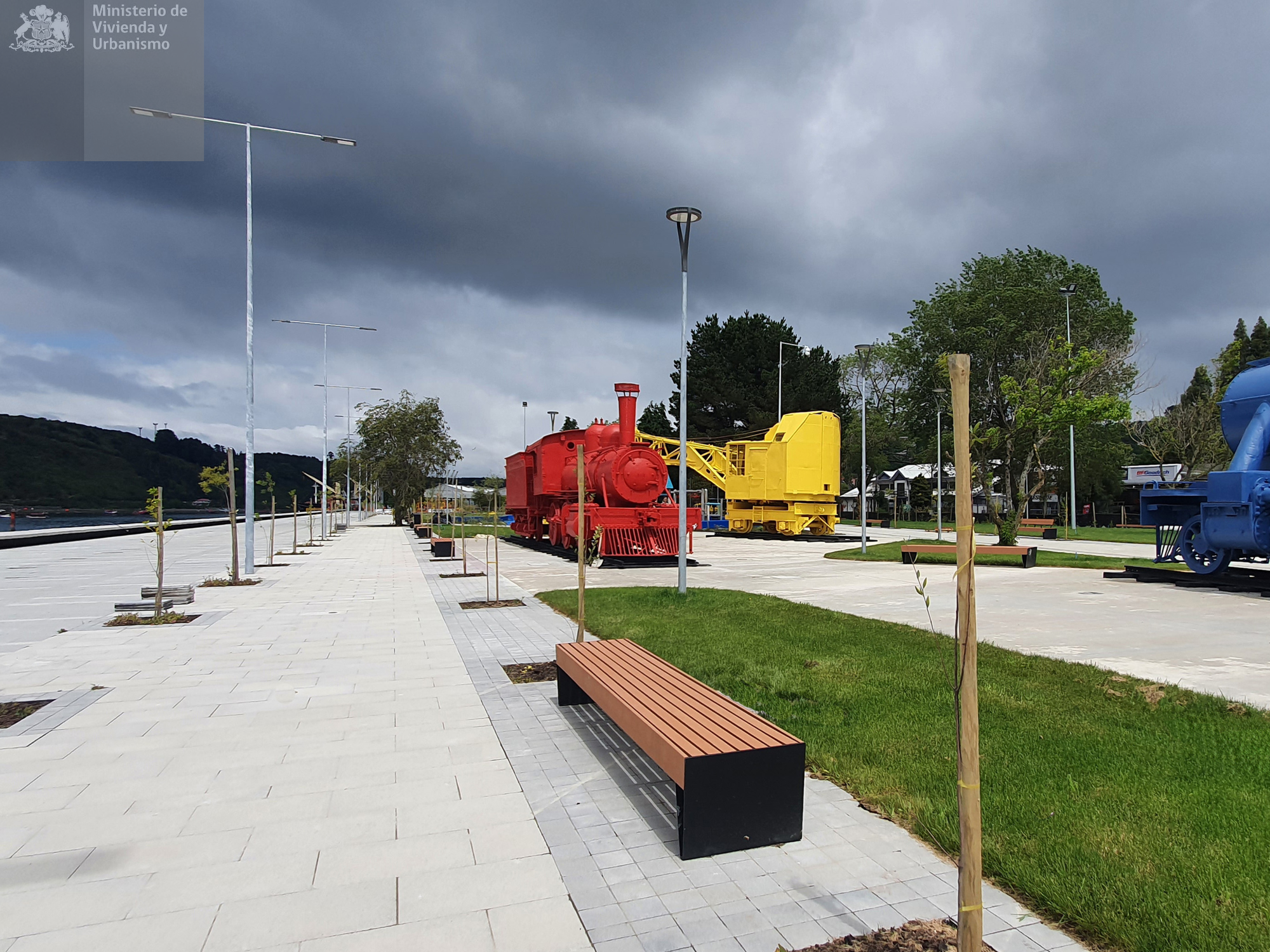 Con una superficie de 9 hectáreas y 1,6 kilómetros de extensión, el parque se despliega desde la Plaza de Armas hasta el embarcadero que conecta con las islas Tenglo y Maillén, transformando un vacío urbano en un lugar de encuentro, circulación y contemplación. Su diseño se originó en un proceso participativo que convocó a más de 50 mil personas y supuso una inversión superior a 13 mil millones de pesos, proponiendo una infraestructura sensible al territorio y al clima local.