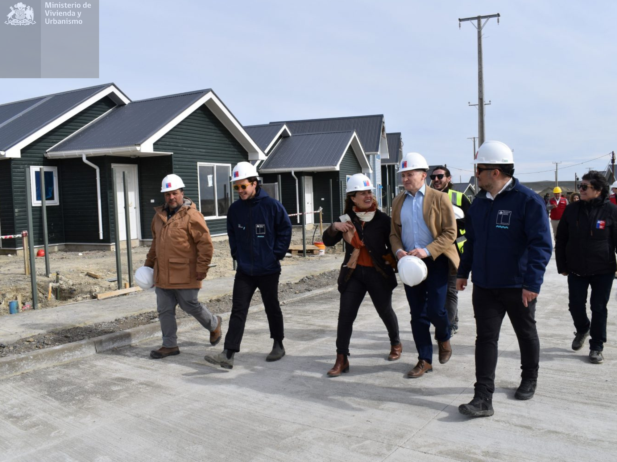 la subsecretaria de Vivienda y Urbanismo, Gabriela Elgueta Poblete, encabezó una jornada de trabajo en la comuna de Primavera, marcada por dos hitos: la visita junto a las familias beneficiarias al proyecto “Villa Pioneros”, que contempla 49 viviendas en construcción, y la firma del convenio del Programa para Pequeñas Localidades (PPL), que permitirá planificar y ejecutar obras de mejoramiento urbano en Cerro Sombrero. Durante la visita al conjunto habitacional, la autoridad destacó la relevancia de esta iniciativa, que constituye la primera construcción de viviendas del Ministerio en Tierra del Fuego. El proyecto “Villa Pioneros”, enmarcado en el Programa de Habitabilidad Rural (DS10), presenta un 78% de avance y considera una inversión de más de 7.400 millones de pesos, financiada por el Minvu, el Gobierno Regional y el ahorro de las familias. Las viviendas, de uno y dos pisos, además de una adaptada para persona con discapacidad, cuentan con aislación térmica, calefacción central, ventanas termopanel y amplias áreas verdes, garantizando eficiencia energética y confort para las familias.