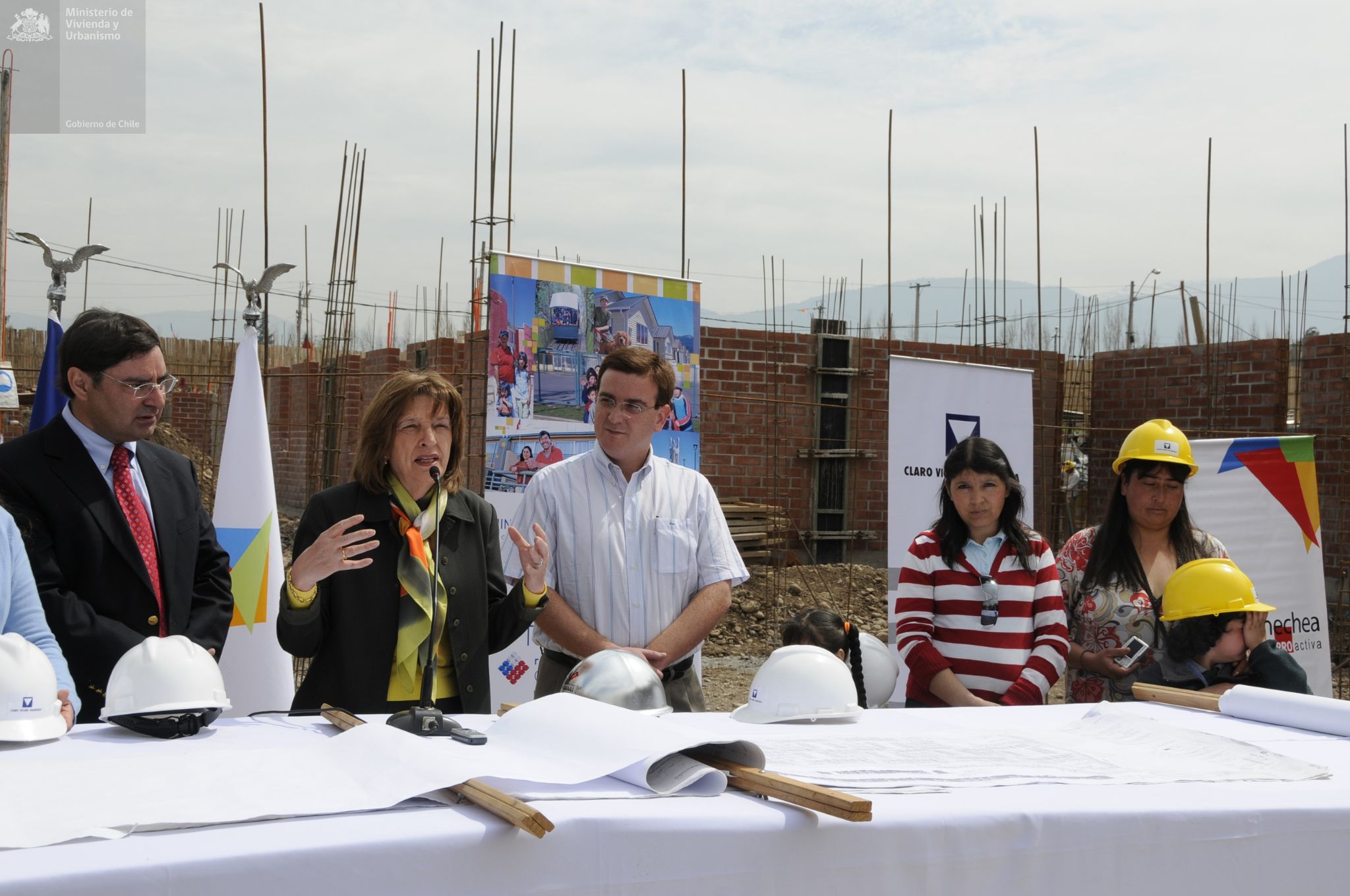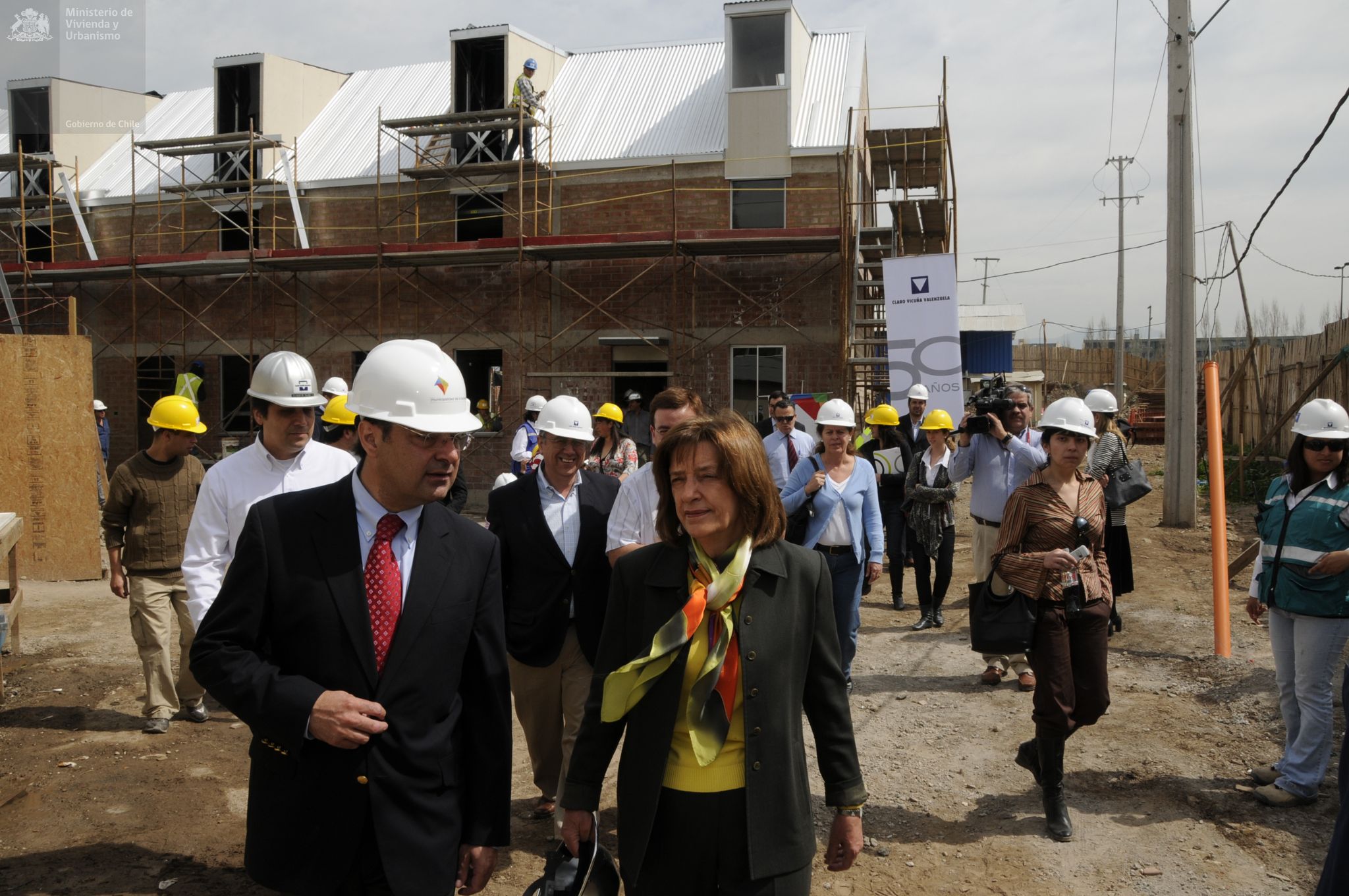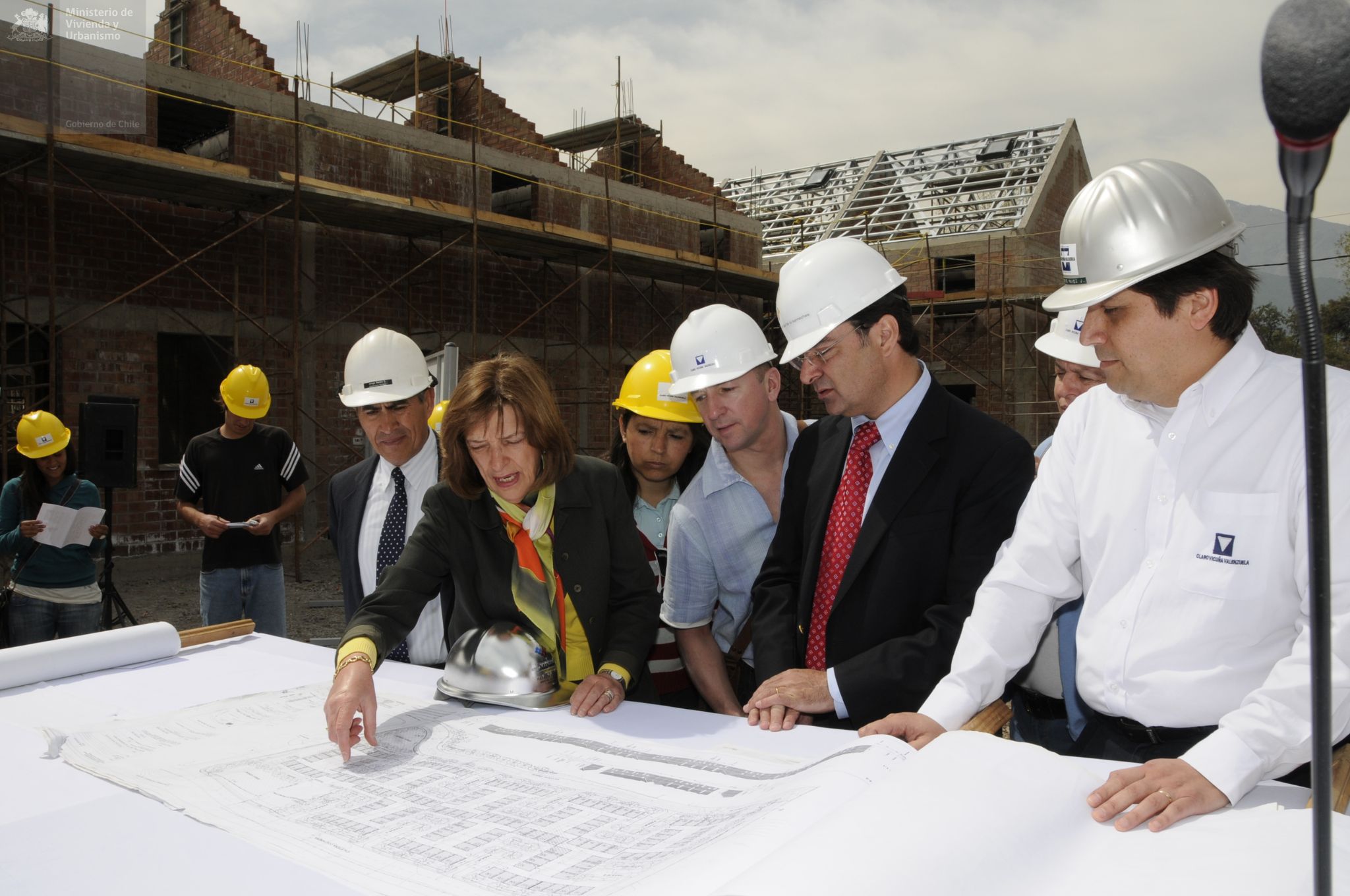 En su visita a la construcción de viviendas en Lo Barnechea, la Ministra Patricia Poblete se reunió con personas de la corporación Claro Vicuña Valenzuela (CVV), empresa perteneciente a la industria de la construcción de obras civiles en Chile.