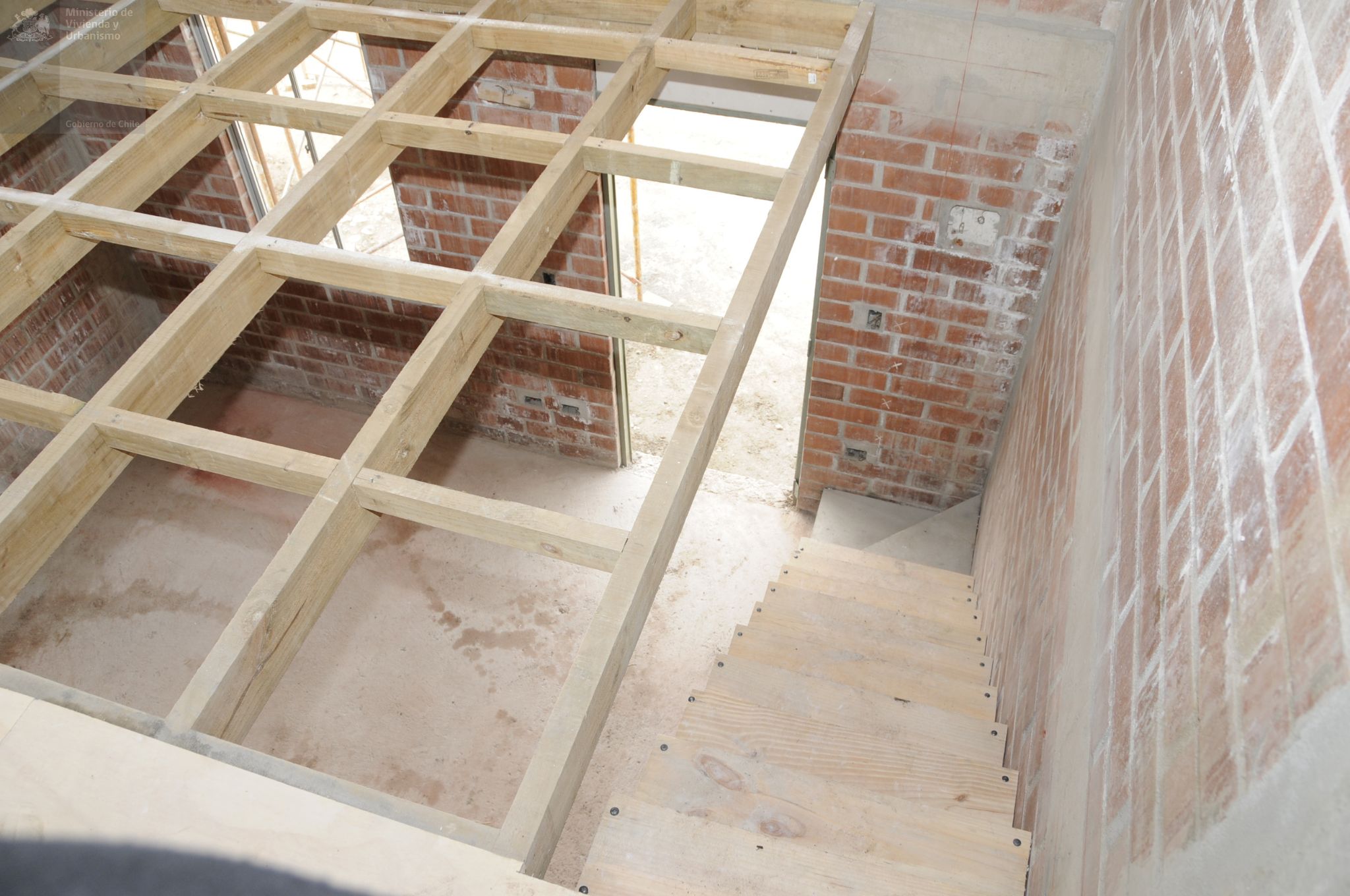 La construcción fue hecha con material sólido, ladrillos y cemento. Las casas de dos pisos forman hileras pareadas.