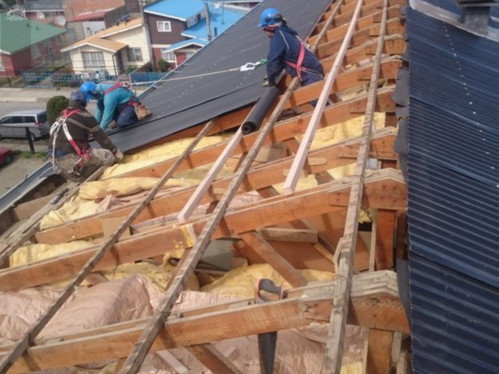 • Primera etapa (2015): se reemplazaron las cubiertas e instalaron planchas de zinc, aislación y pintura; se repusieron aleros y canaletas; se reparó la estructura metálica de las escaleras, con cambio de peldaños y barandas en madera de lenga. Además, se canalizaron los cables, se construyeron casetas para medidores de gas y agua, se reemplazó el 100% de las ventanas por termopaneles, se instalaron postes solares fotovoltaicos y se implementó un plan de control de plagas de palomas.